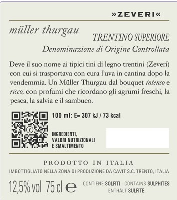 Il Müller Thurgau è un vitigno originato dall'incrocio tra Riesling e Madeleine Royale, creato alla fine del 19° secolo dall'enologo svizzero Müller, proveniente dal cantone Turgovia o Thurgau. In Trentino, il Müller Thurgau ha trovato piena espressione delle proprie caratteristiche aromatiche in alta quota, soprattutto nella Val di Cembra.